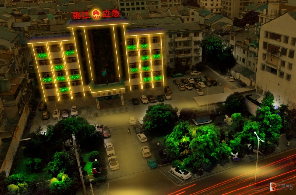 湖南省益陽市桃江縣應(yīng)急管理中心燈光設(shè)計(jì)方案,方案彩用線條燈、竹造型燈、發(fā)光字等組成,顯示楠竹之鄉(xiāng)的特點(diǎn),開啟旅游城市的街景夜游模式。