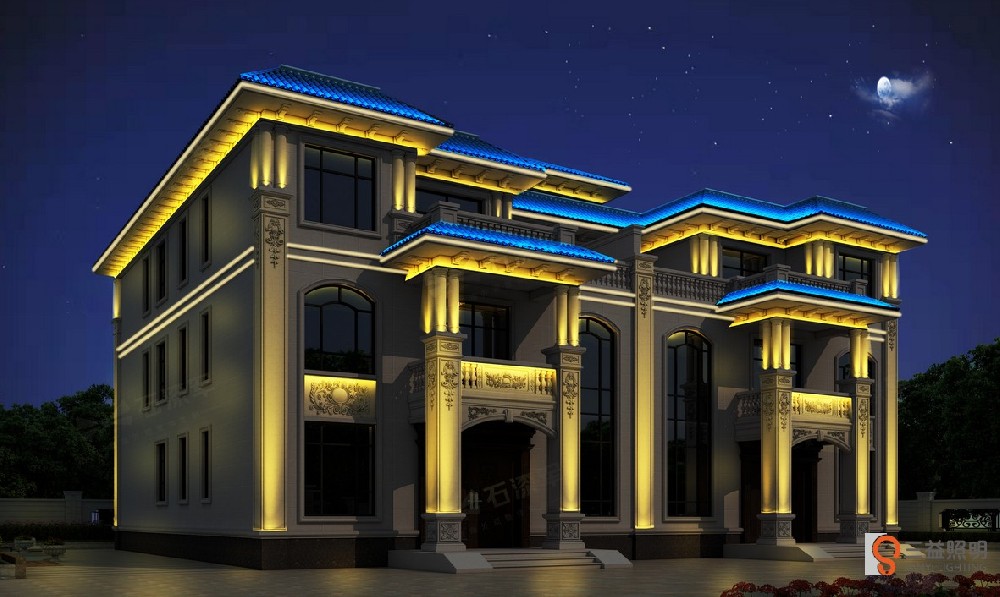 益陽市資陽區(qū)新橋河鎮(zhèn)田總別墅燈光設(shè)計(jì)項(xiàng)目別墅外墻燈光設(shè)計(jì),別墅 燈光亮化設(shè)計(jì),農(nóng)村自建房燈光工程,跟據(jù)墻體外觀特色,使用燈光勾勒出別墅造型,使鄉(xiāng)村別墅在夜間也能綻···